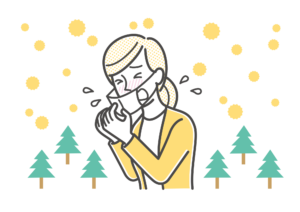 - 顔にフィットするマスク、メガネを装着しましょう。花粉飛散の多い時間帯(昼前後と夕方)の外出を避けましょう